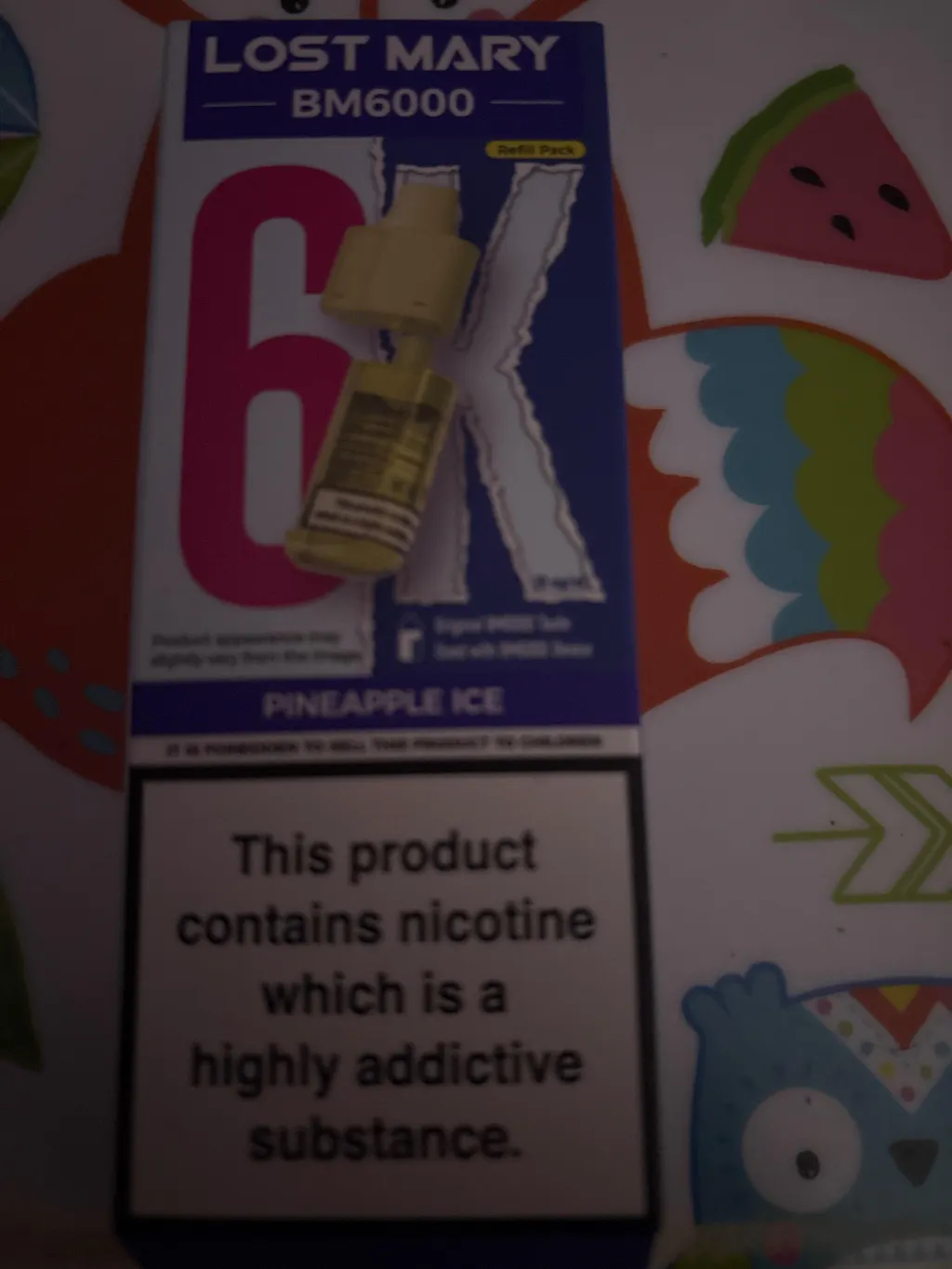 Lost Mary BM6000 pods contain 20mg/ml nicotine salt (2%), aligned with UK TPD regulations.